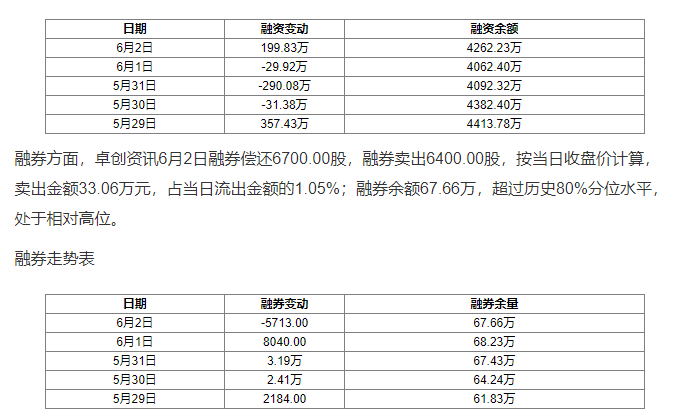 卓創資訊:6月2日獲融資買入542.23萬元,占當日流入資金比例13.77笑短%