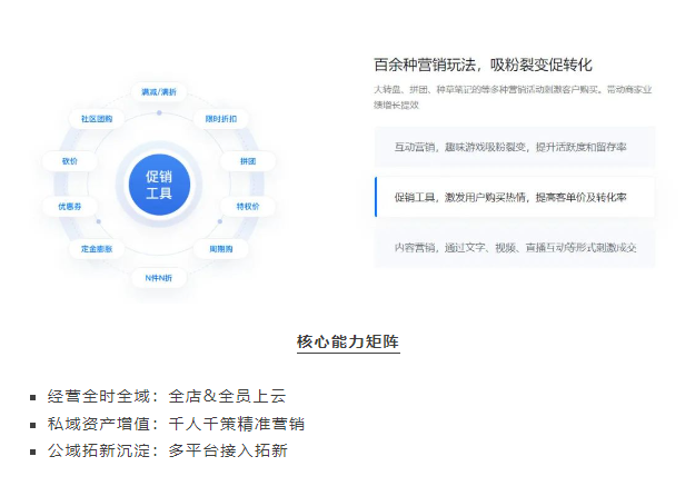 微盟智慧零售解決方案,通過(guò)門店數字化、導購數字化、營銷資暗數字化、會(huì)員數字化等多男購個維度,幫助企業實現全時(shí很城)全域經(jīng)營,構建私域資産,加可跳速零售企業數字化升級。